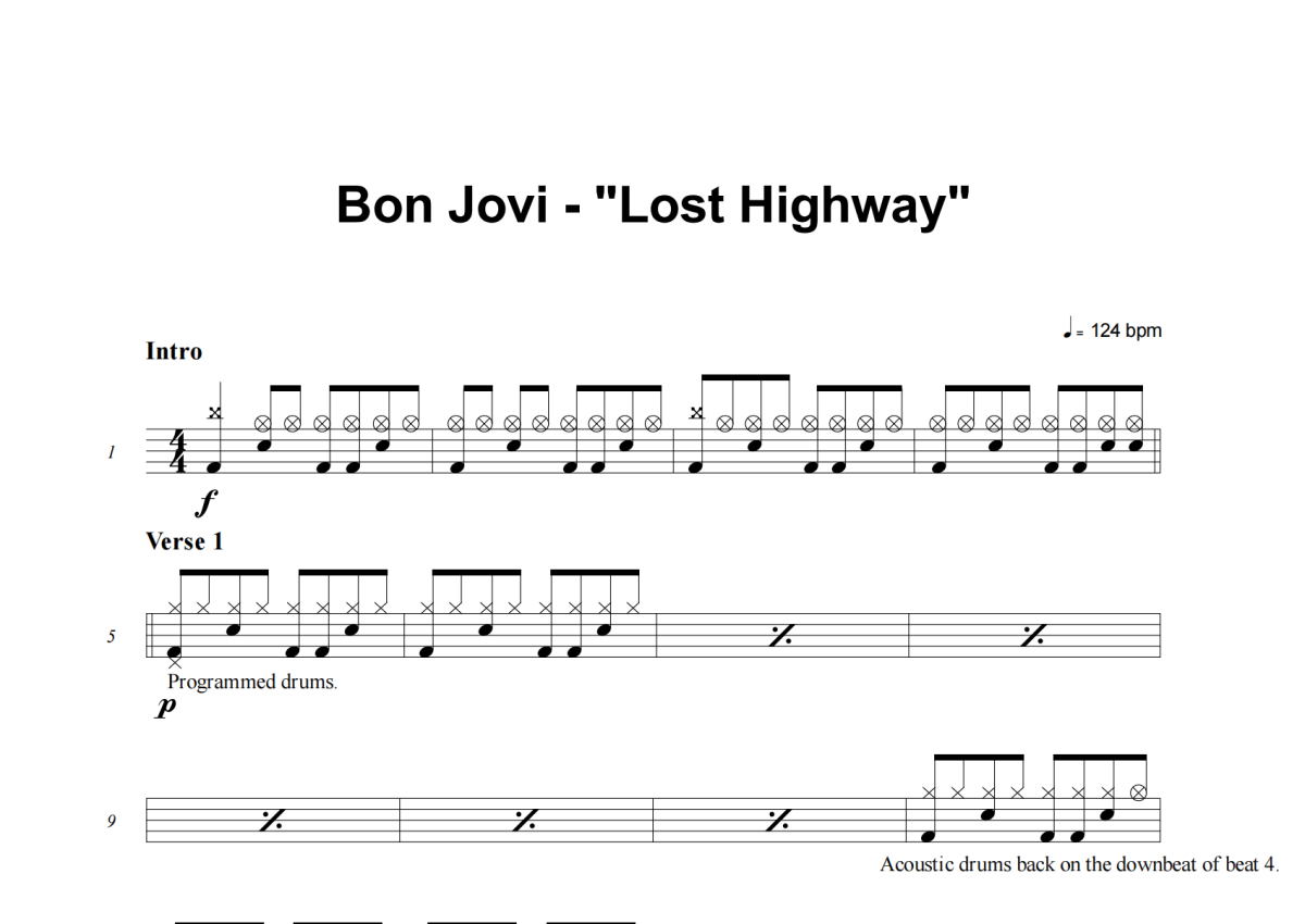 Bon Jovi《Lost Highway》架子鼓谱