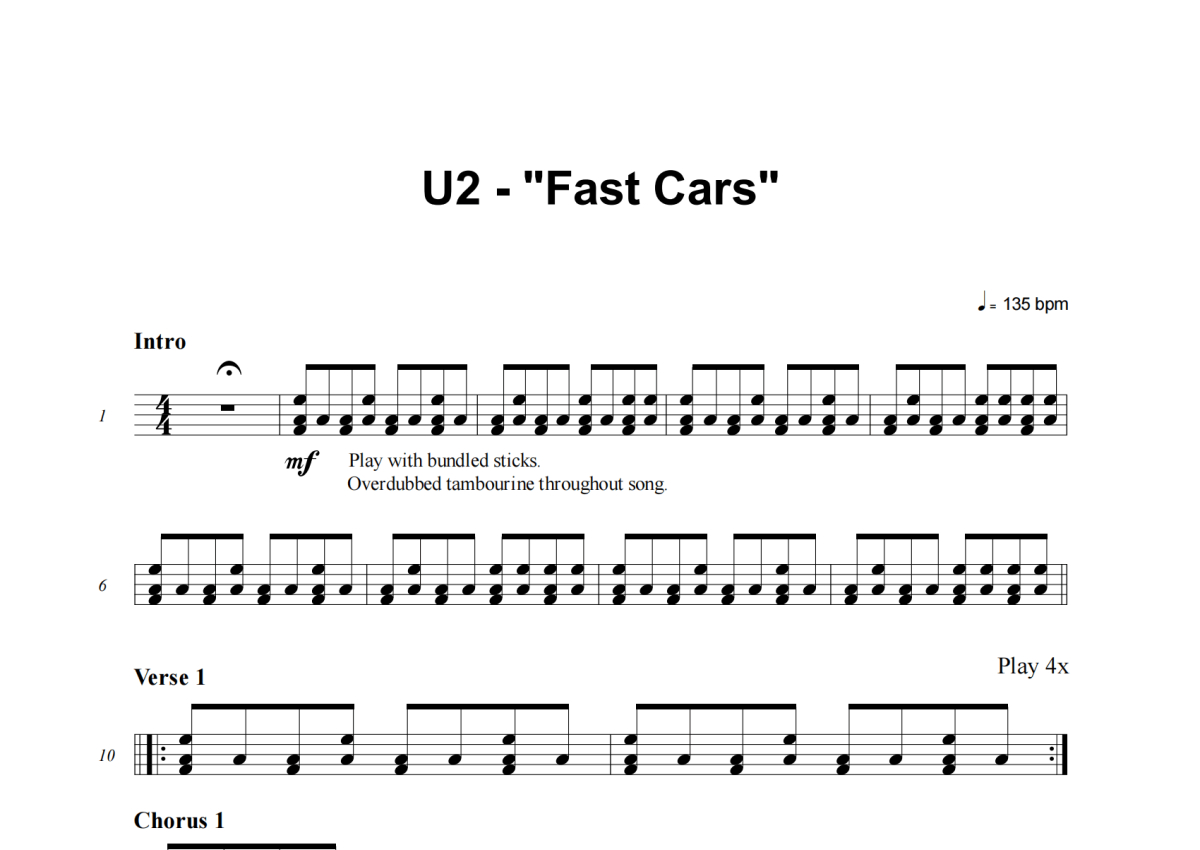 U2《Fast Cars》架子鼓谱