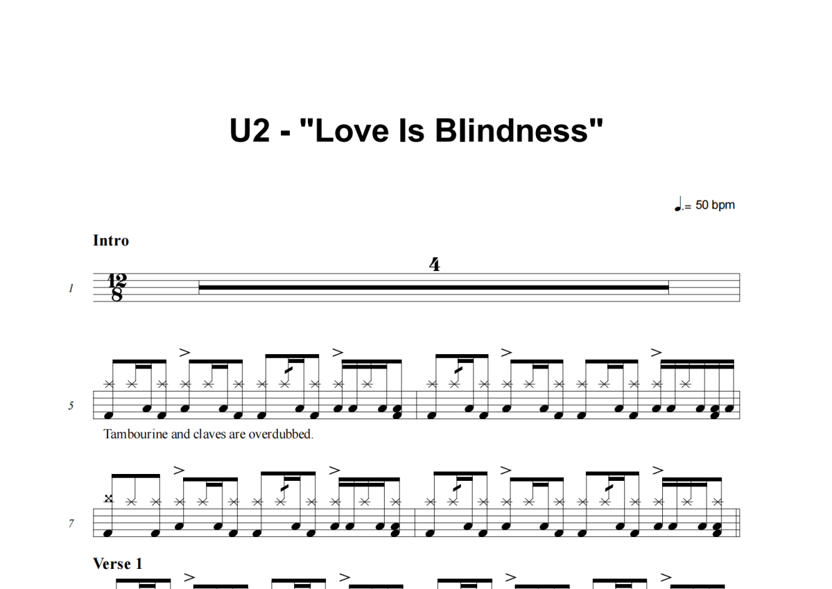 《Love Is Blindness》是U2演唱的一首歌曲,这份架子鼓谱共有三张高清图谱,图谱由 @举个例子 编配上传,图谱使用五线谱编配,使用这份Love Is Blindness架子鼓谱,你将能够轻松地敲打出这首U2的Love Is Blindness,快来尝试吧。