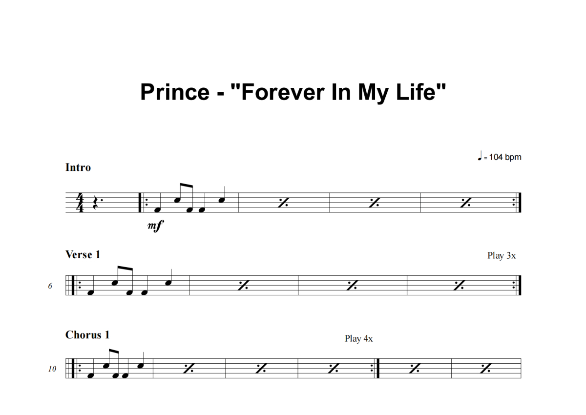 《Forever In My Life》是Prince演唱的一首歌曲,这份架子鼓谱共有两张高清图谱,图谱由 @举个例子 编配上传,图谱使用五线谱编配,使用这份Forever In My Life架子鼓谱,你将能够轻松地敲打出这首Prince的Forever In My Life,快来尝试吧。