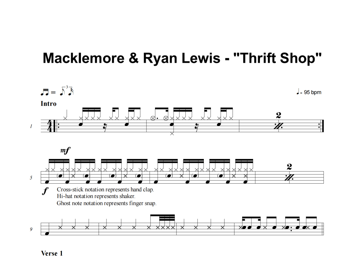 Macklemore & Ryan Lewis《Thrift Shop》架子鼓谱