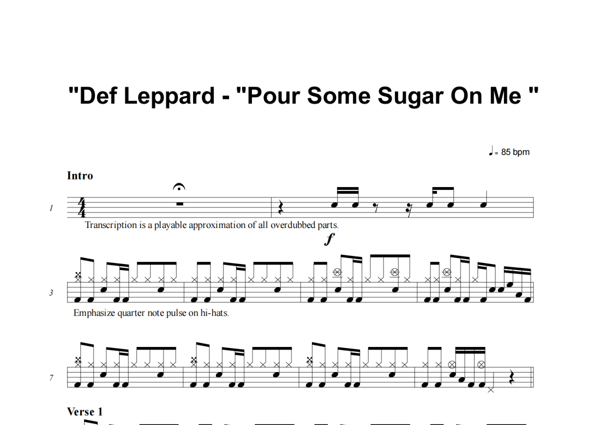 Def Leppard《Pour Some Sugar On Me》架子鼓谱