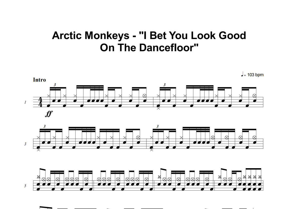 Arctic Monkeys《I Bet You Look Good On The Dancefloor》架子鼓谱