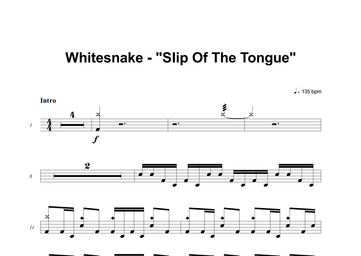 Whitesnake《Slip Of The Tongue》架子鼓谱