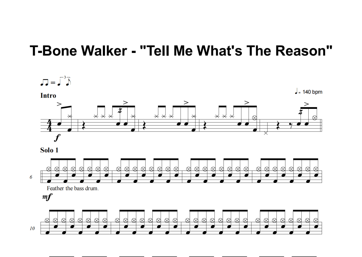T-Bone Walker《Tell Me What's The Reason》架子鼓谱