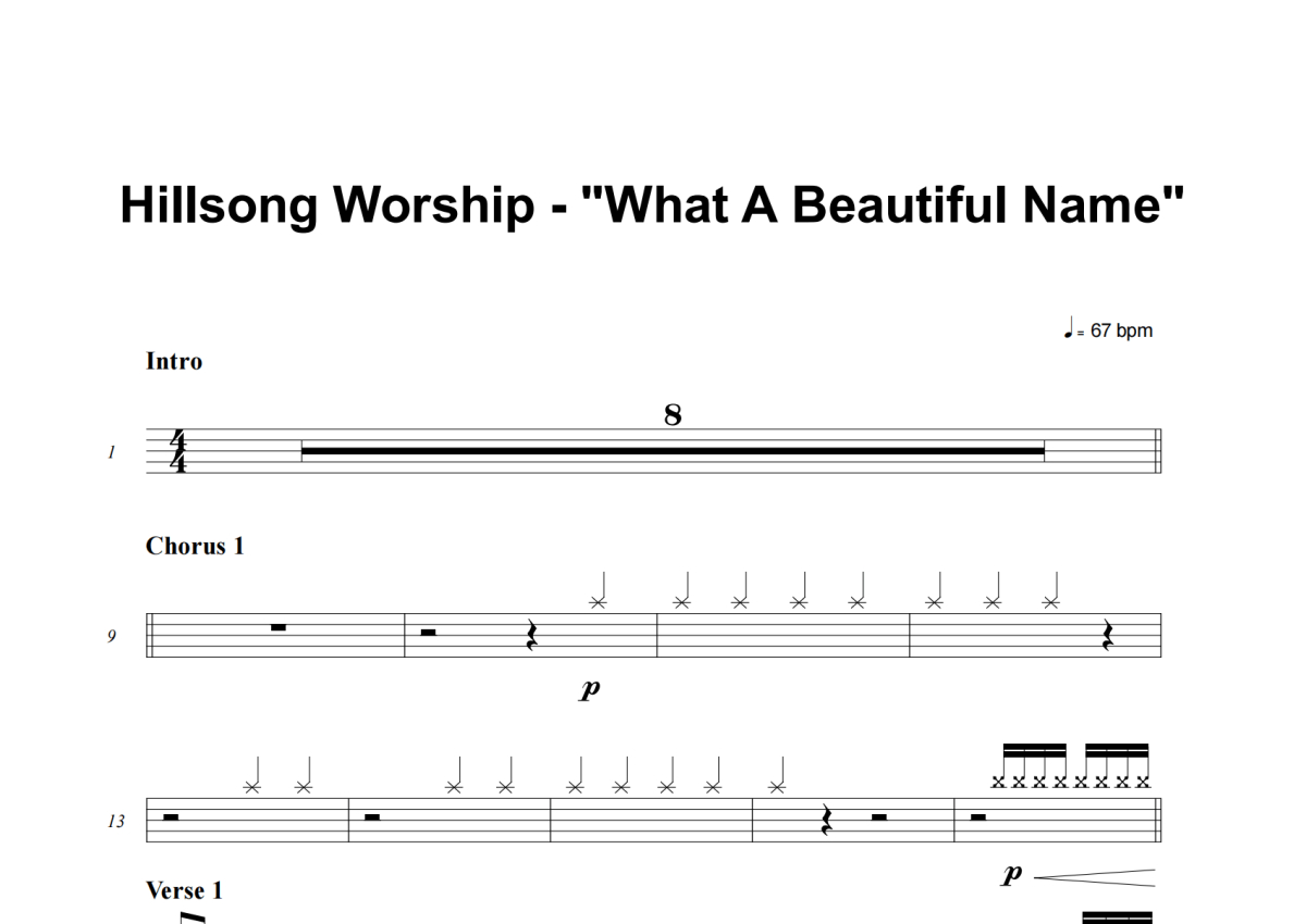Hillsong Worship《What A Beautiful Name》架子鼓谱