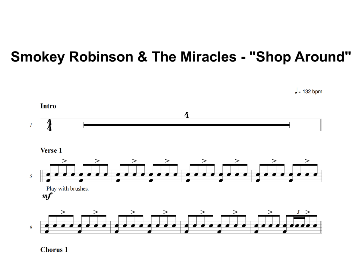 Smokey Robinson & The Miracles《Shop Around》架子鼓谱