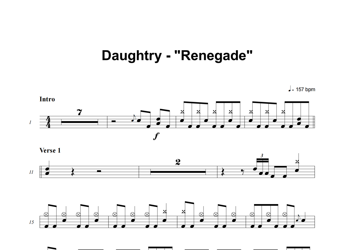 Daughtry《Renegade》架子鼓谱