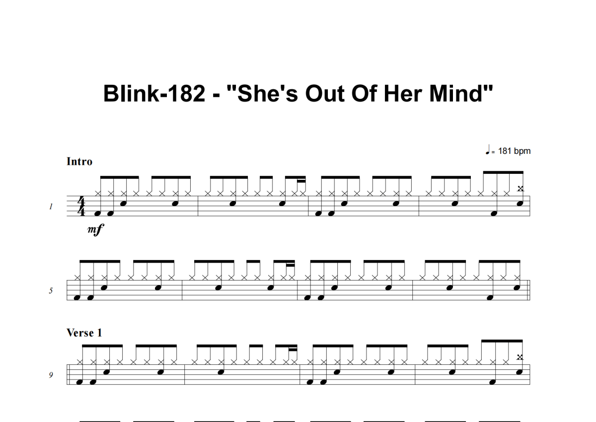 Blink-182《She's Out Of Her Mind》架子鼓谱