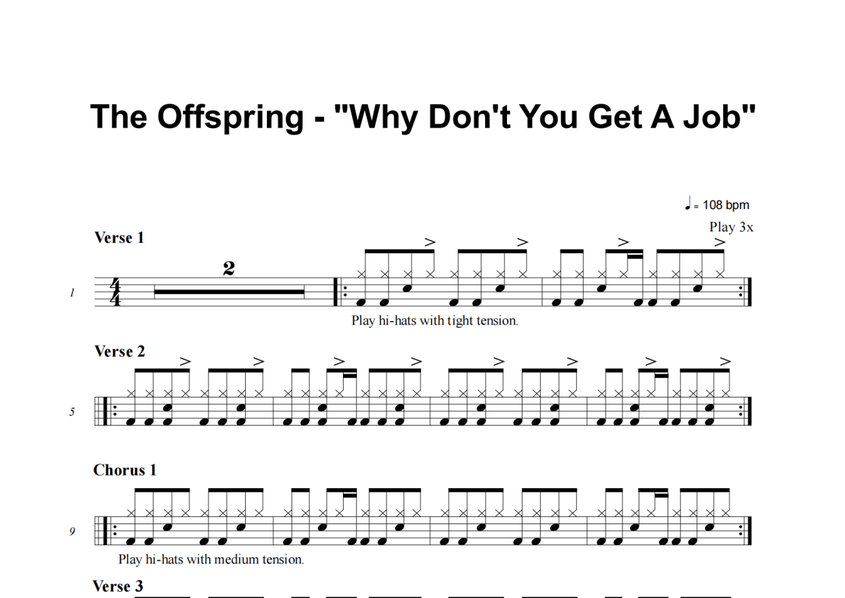 The Offspring《Why Don't You Get A Job》架子鼓谱