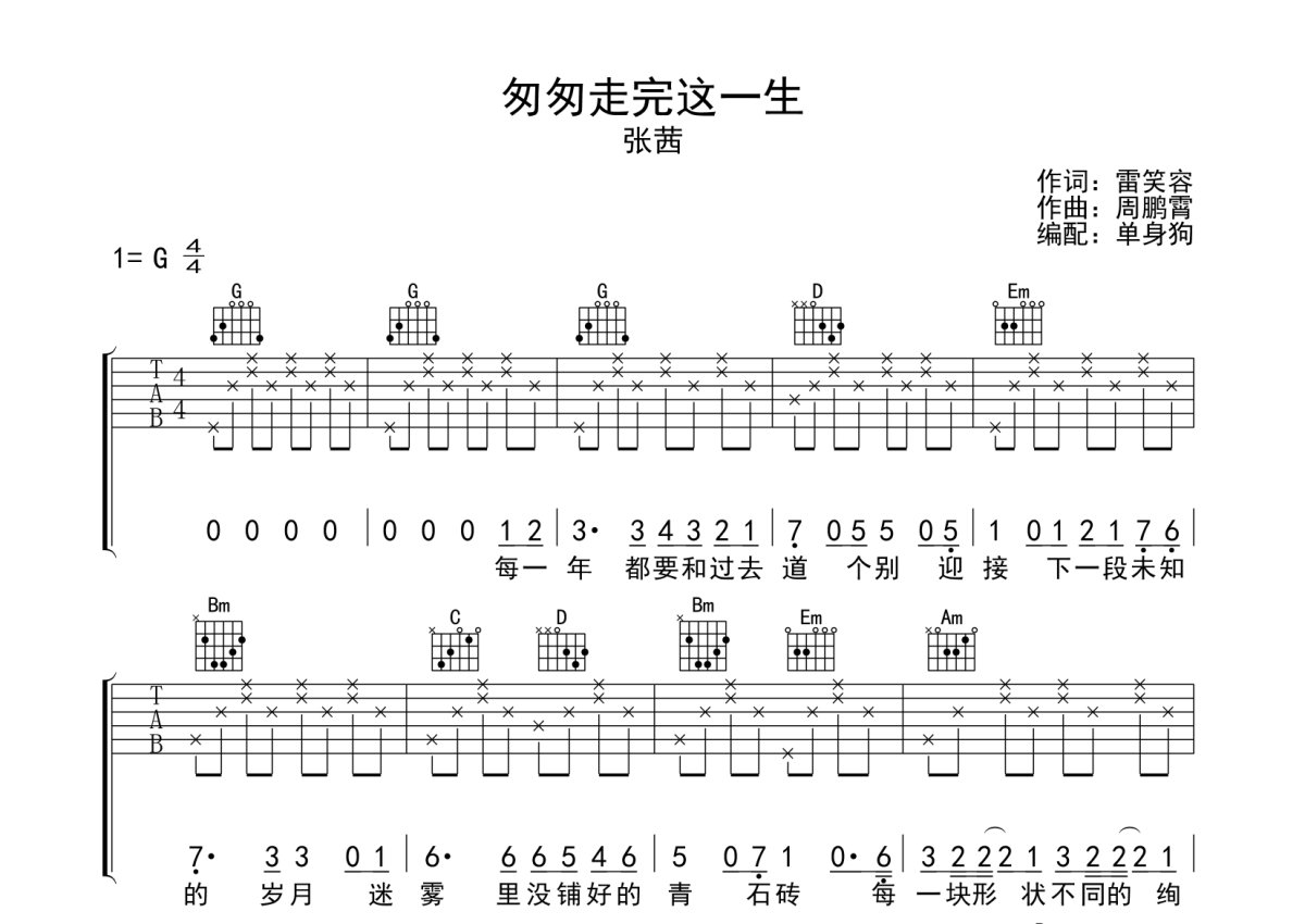 张茜《匆匆走完这一生》吉他谱 - G调弹唱六线谱