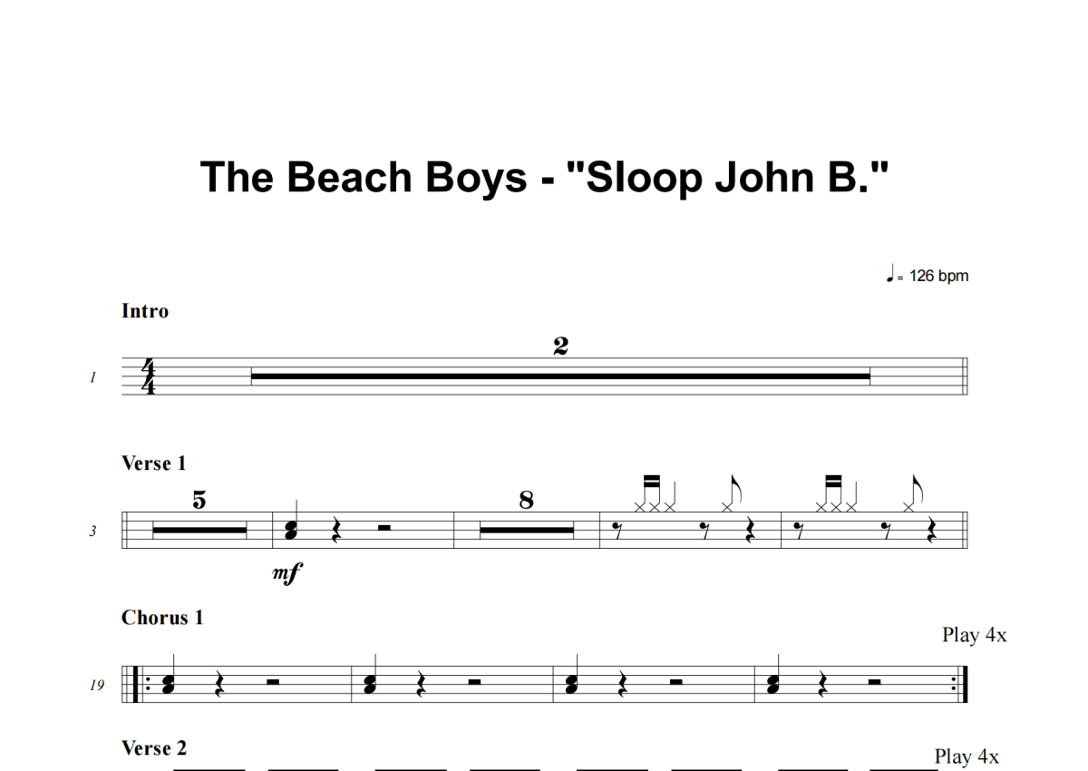 The Beach Boys《Sloop John B.》架子鼓谱