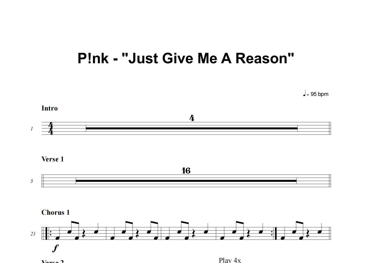 P!nk《Just Give Me A Reason》架子鼓谱
