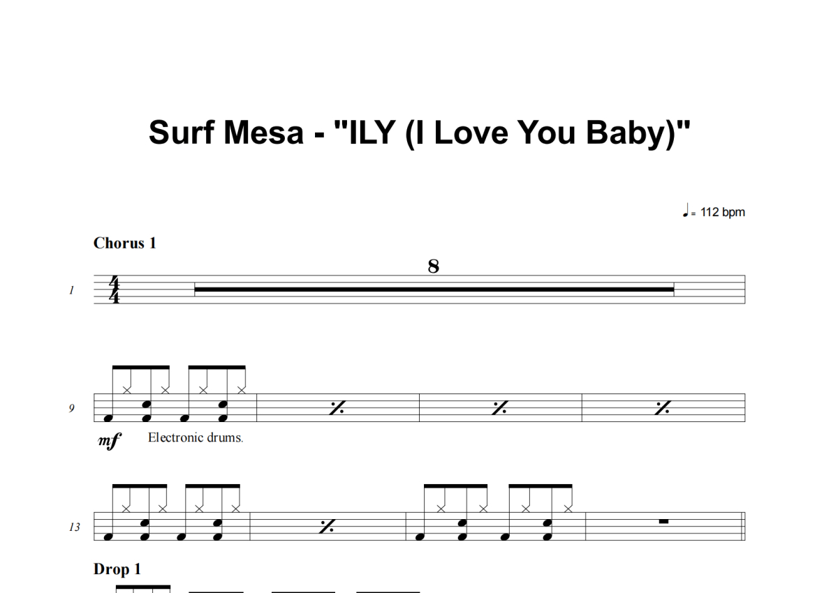 Surf Mesa《ILY (I Love You Baby)》架子鼓谱