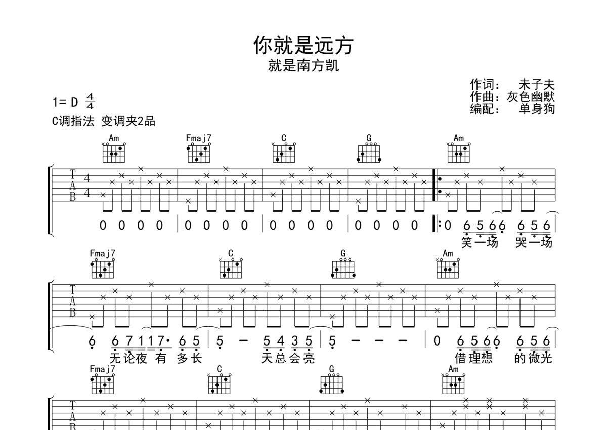 就是南方凯《你就是远方》吉他谱 - C调弹唱六线谱