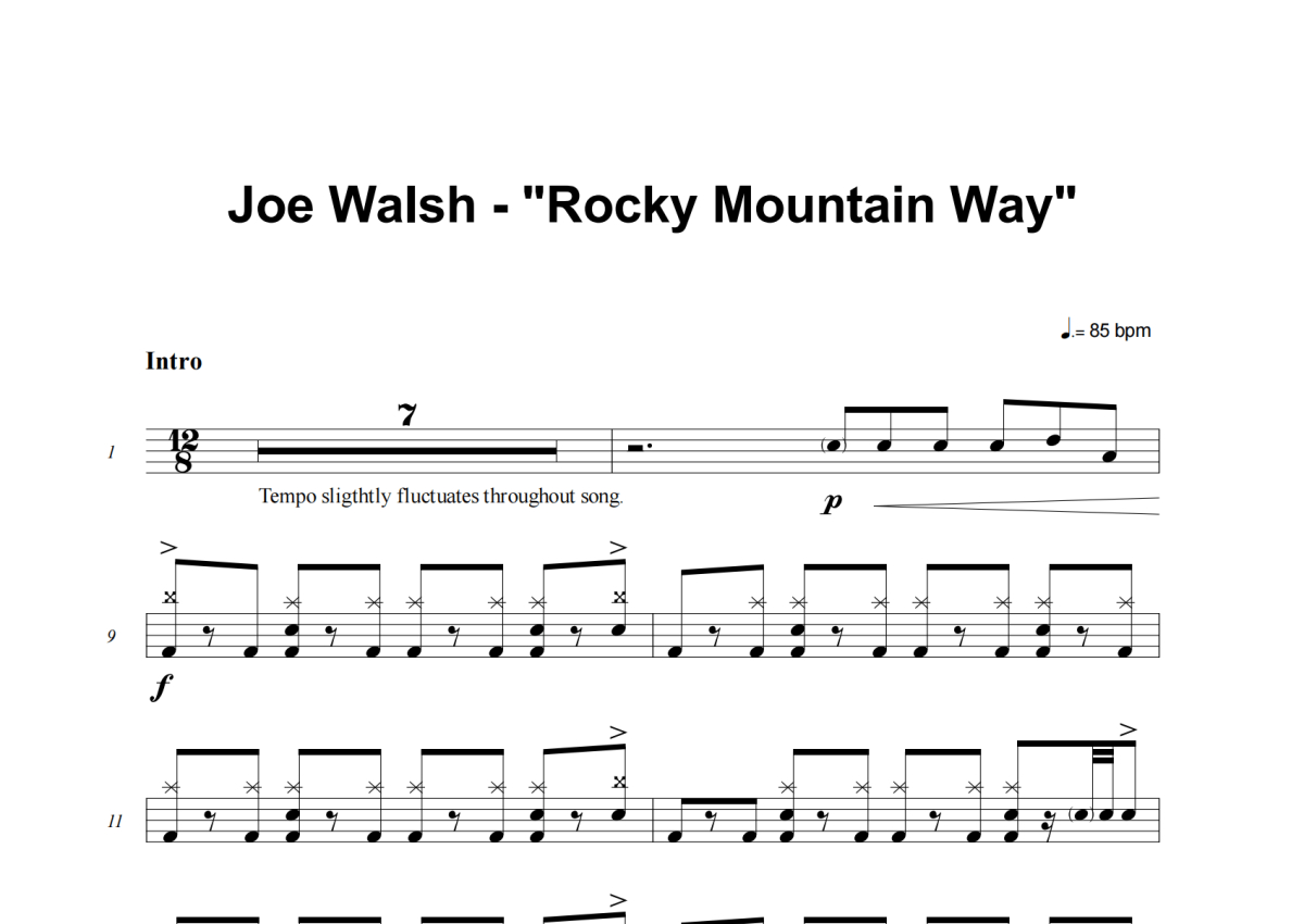 Joe Walsh《Rocky Mountain Way》架子鼓谱
