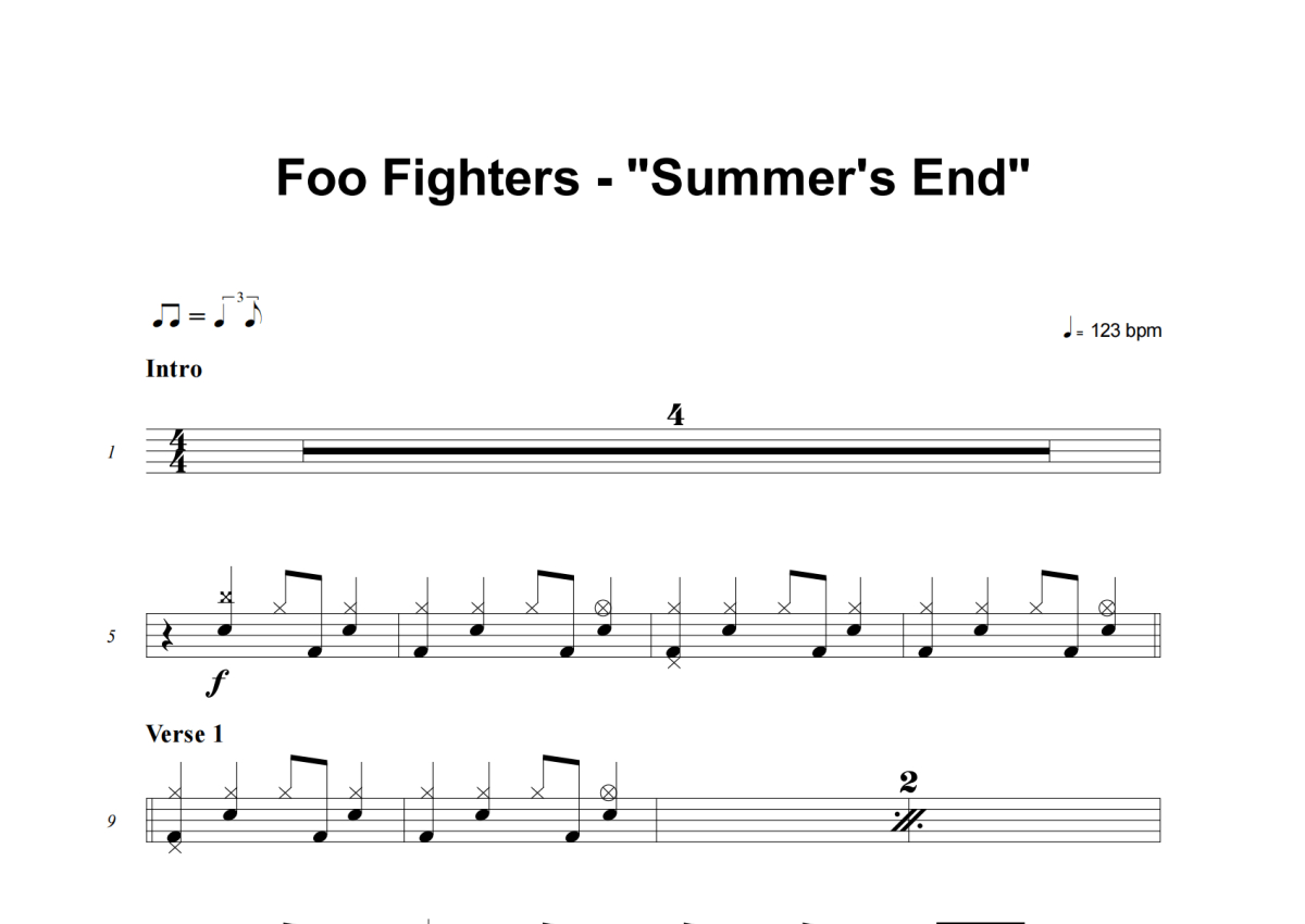Foo Fighters《Summer's End》架子鼓谱