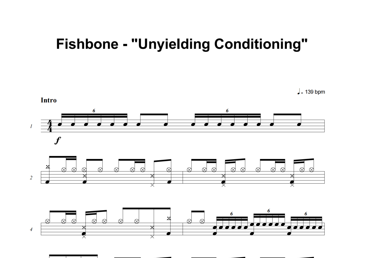 《Unyielding Conditioning》是Fishbone演唱的一首歌曲,这份架子鼓谱共有八张高清图谱,图谱由 @积极处世 编配上传,图谱使用五线谱编配,使用这份Unyielding Conditioning架子鼓谱,你将能够轻松地敲打出这首Fishbone的Unyielding Conditioning,快来尝试吧。