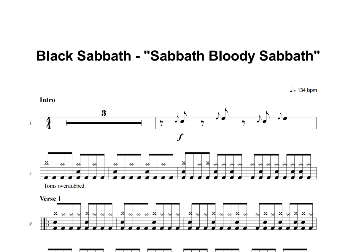 Black Sabbath《Sabbath Bloody Sabbath》架子鼓谱