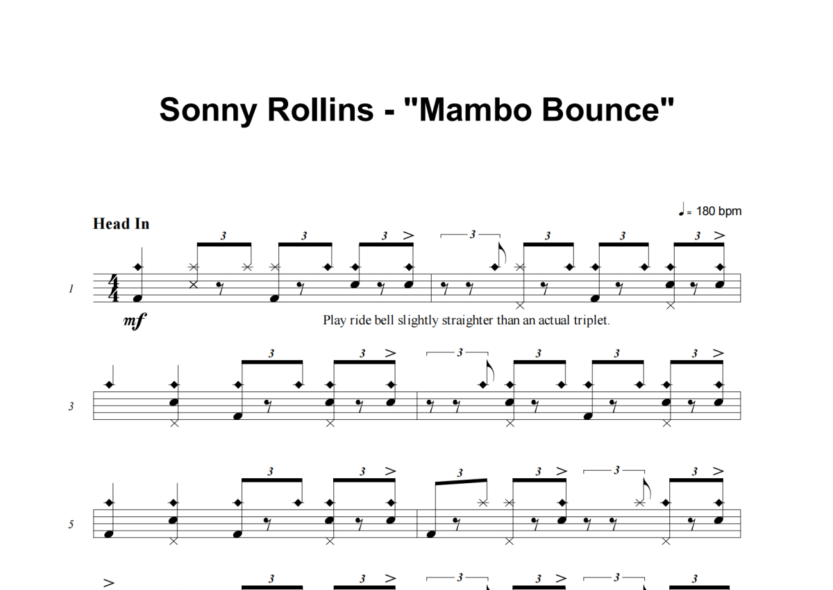 Sonny Rollins《Mambo Bounce》架子鼓谱