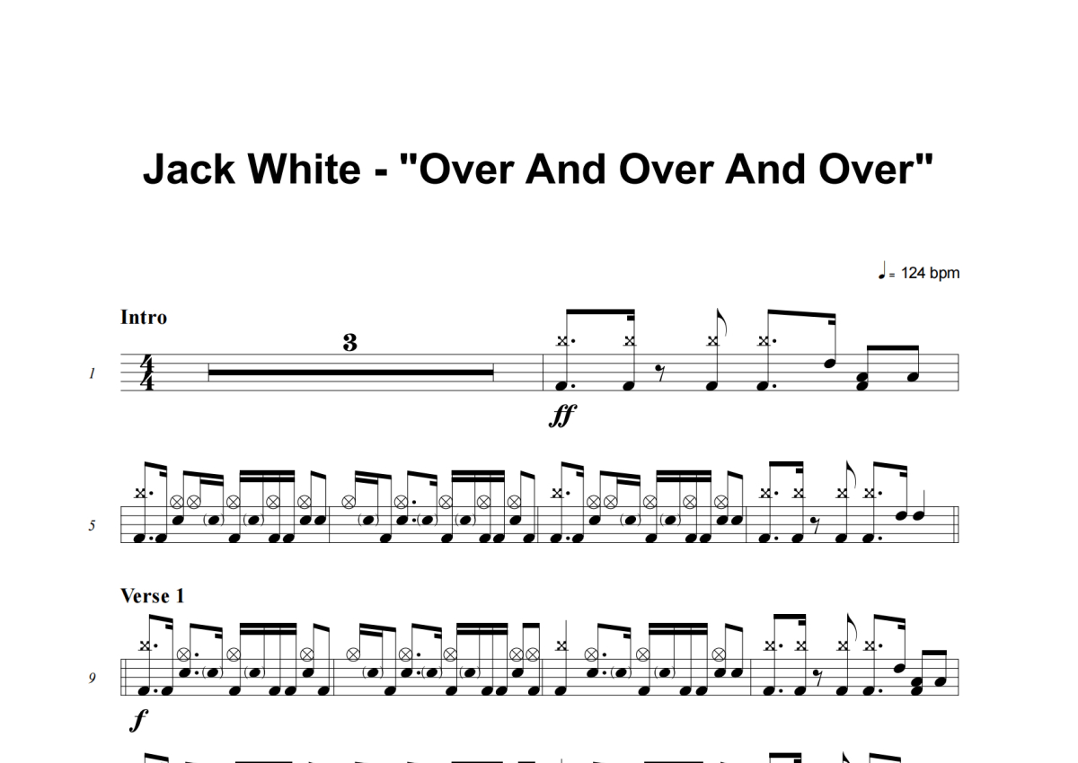 《Over And Over And Over》是Jack White演唱的一首歌曲,这份架子鼓谱共有四张高清图谱,图谱由 @积极处世 编配上传,图谱使用五线谱编配,使用这份Over And Over And Over架子鼓谱,你将能够轻松地敲打出这首Jack White的Over And Over And Over,快来尝试吧。