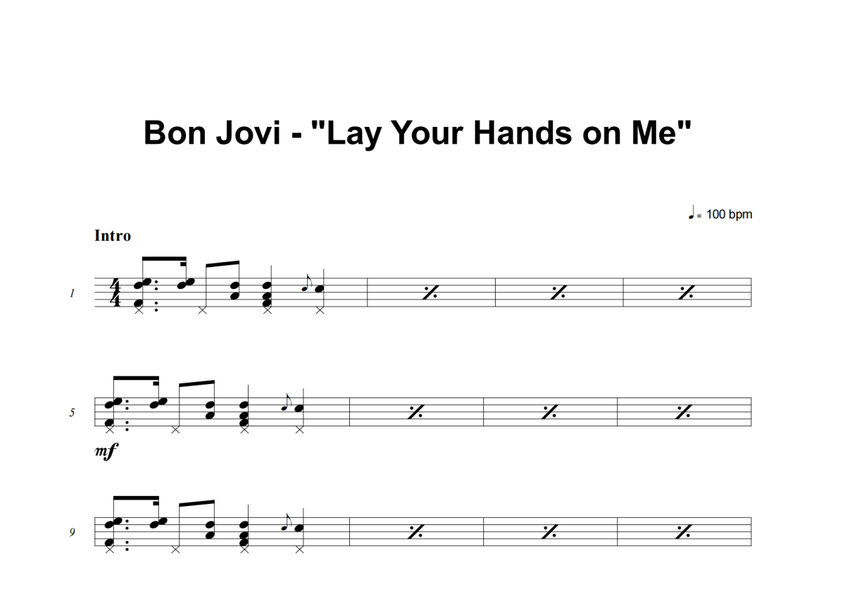 Bon Jovi《Lay Your Hands On Me》架子鼓谱