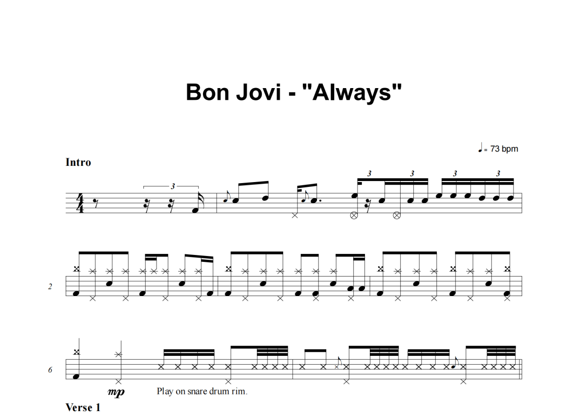 《Always》是Bon Jovi演唱的一首歌曲,这份架子鼓谱共有五张高清图谱,图谱由 @积极处世 编配上传,图谱使用五线谱编配,使用这份Always架子鼓谱,你将能够轻松地敲打出这首Bon Jovi的Always,快来尝试吧。