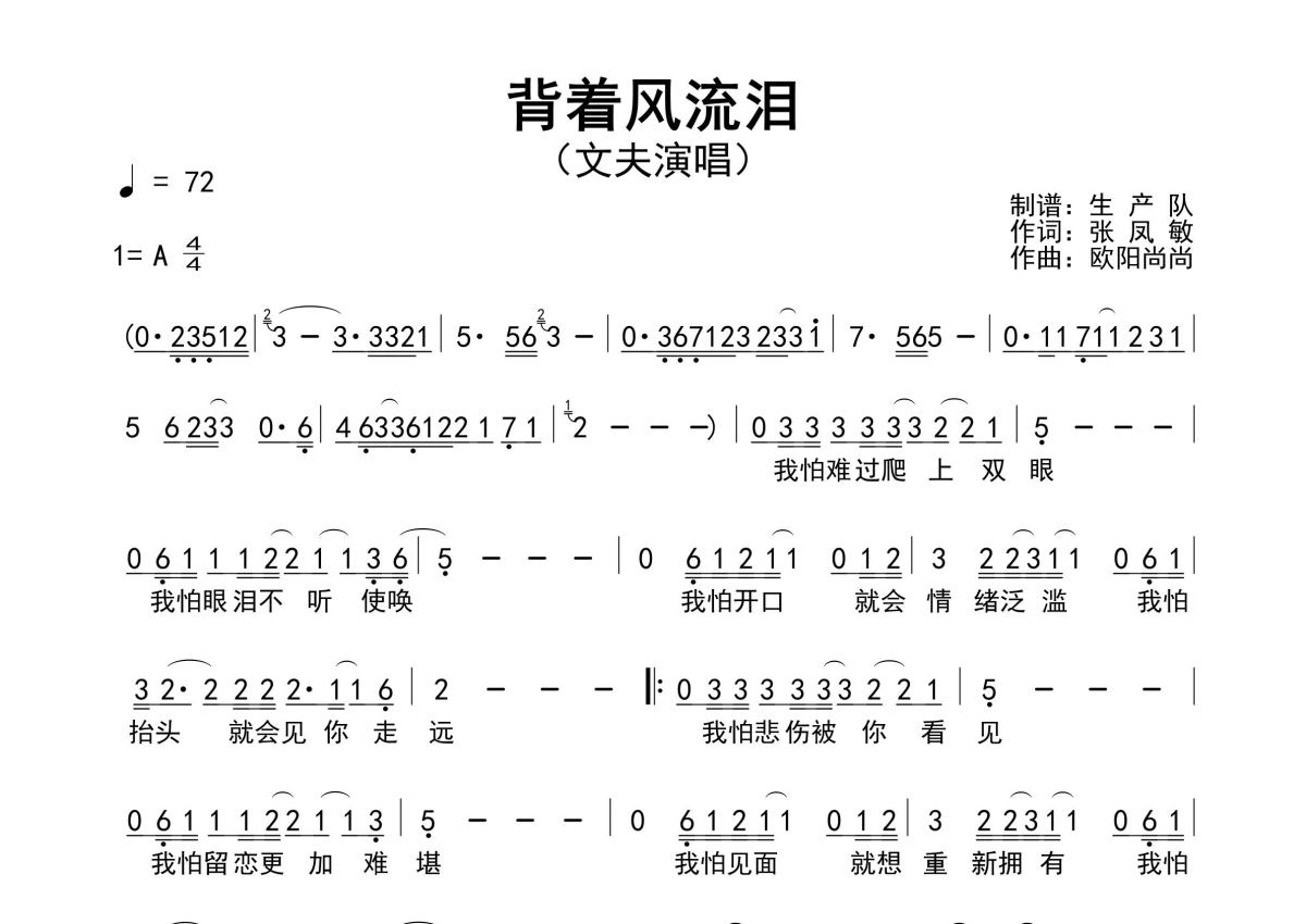 文夫《背着风流泪》简谱 - 原版简谱