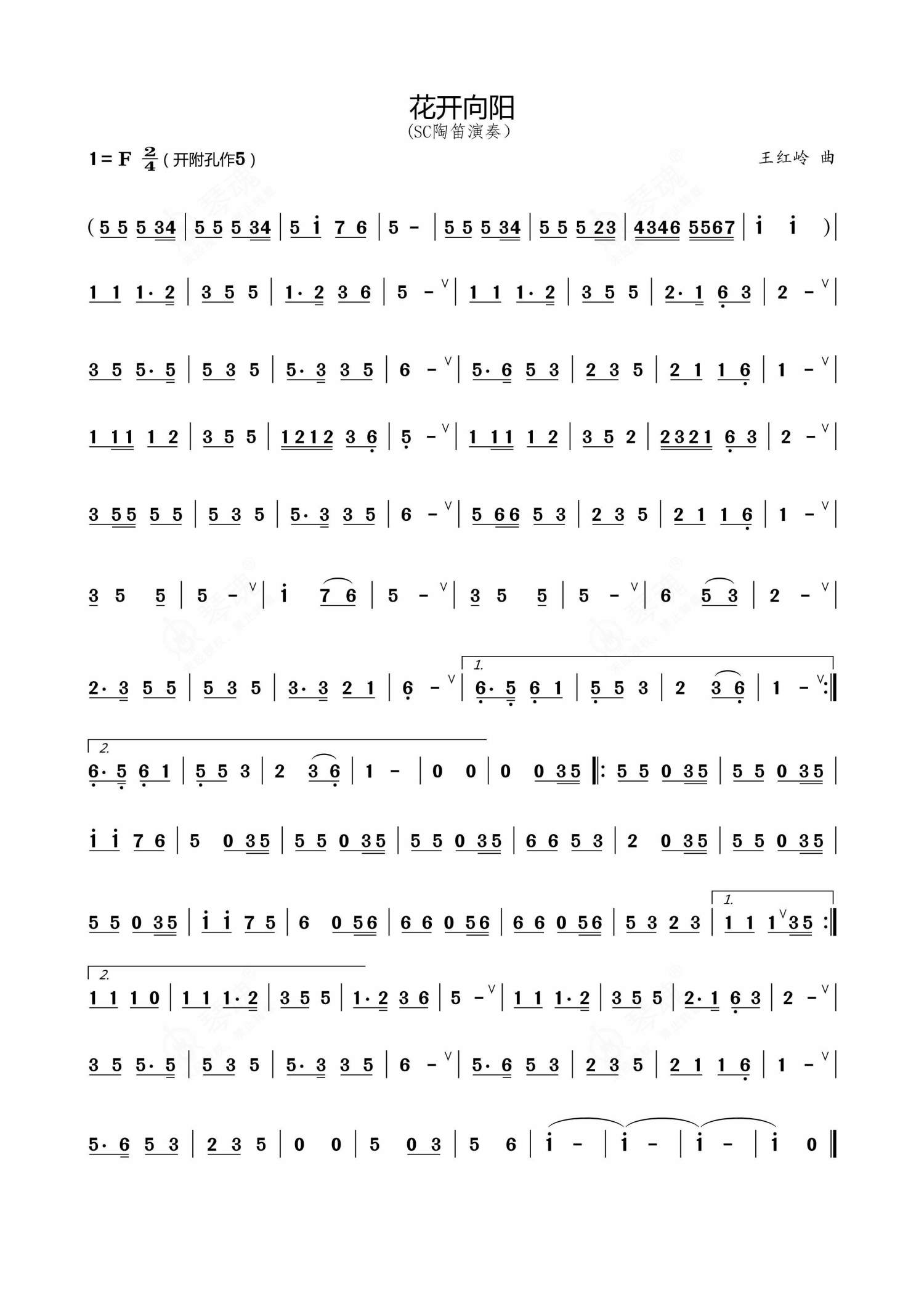 王红岭《花开向阳》简谱 - SC陶笛简谱