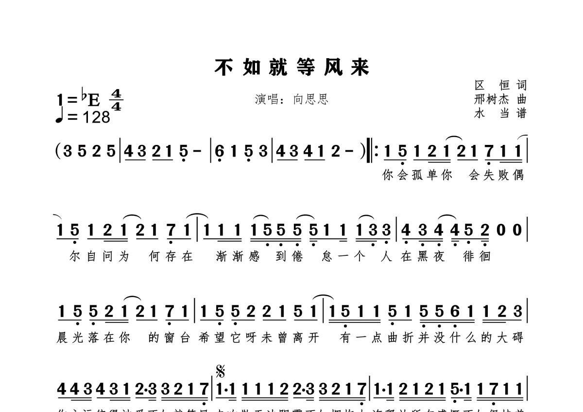 不如就等风来简谱 - 向思思演唱