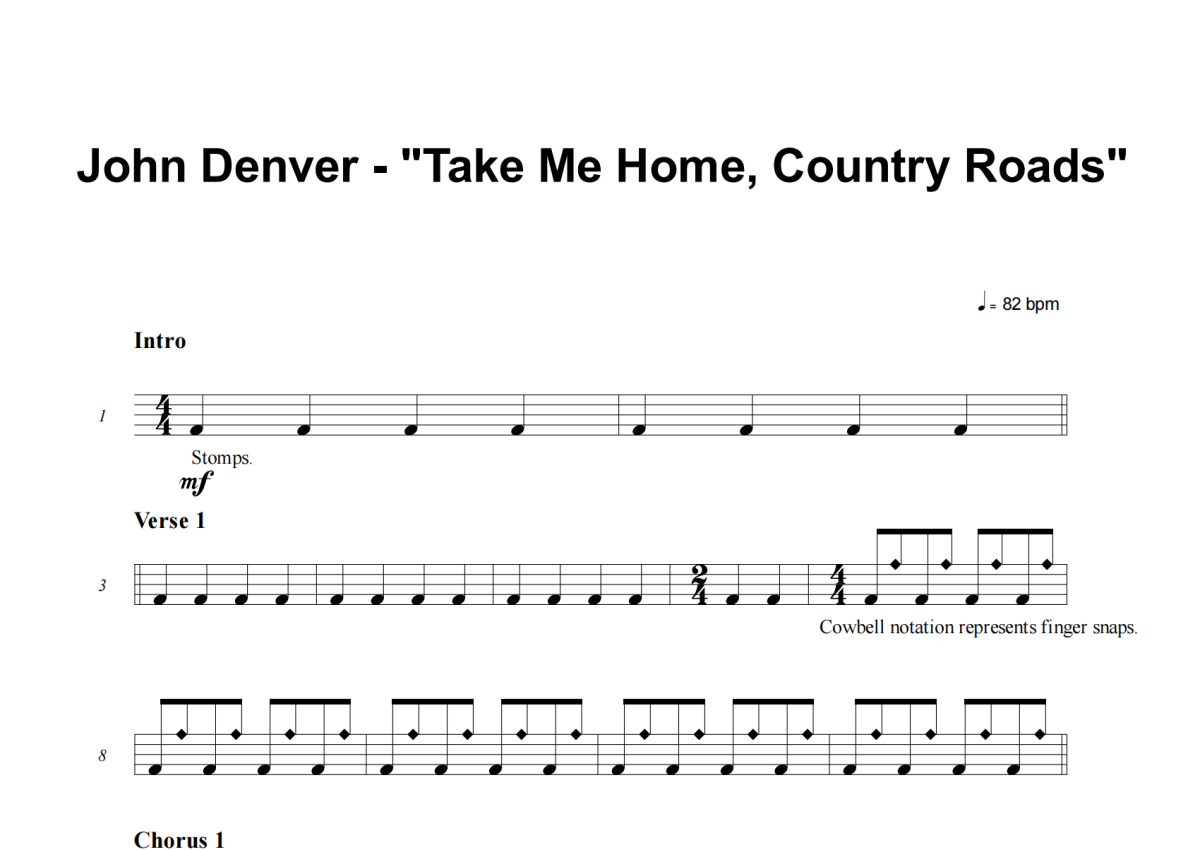 John Denver《Take Me Home, Country Roads》架子鼓谱