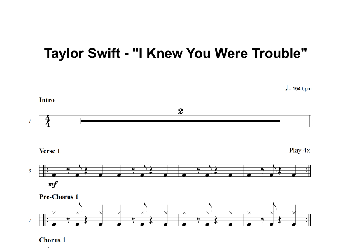 Taylor Swift《I Knew You Were Trouble》架子鼓谱