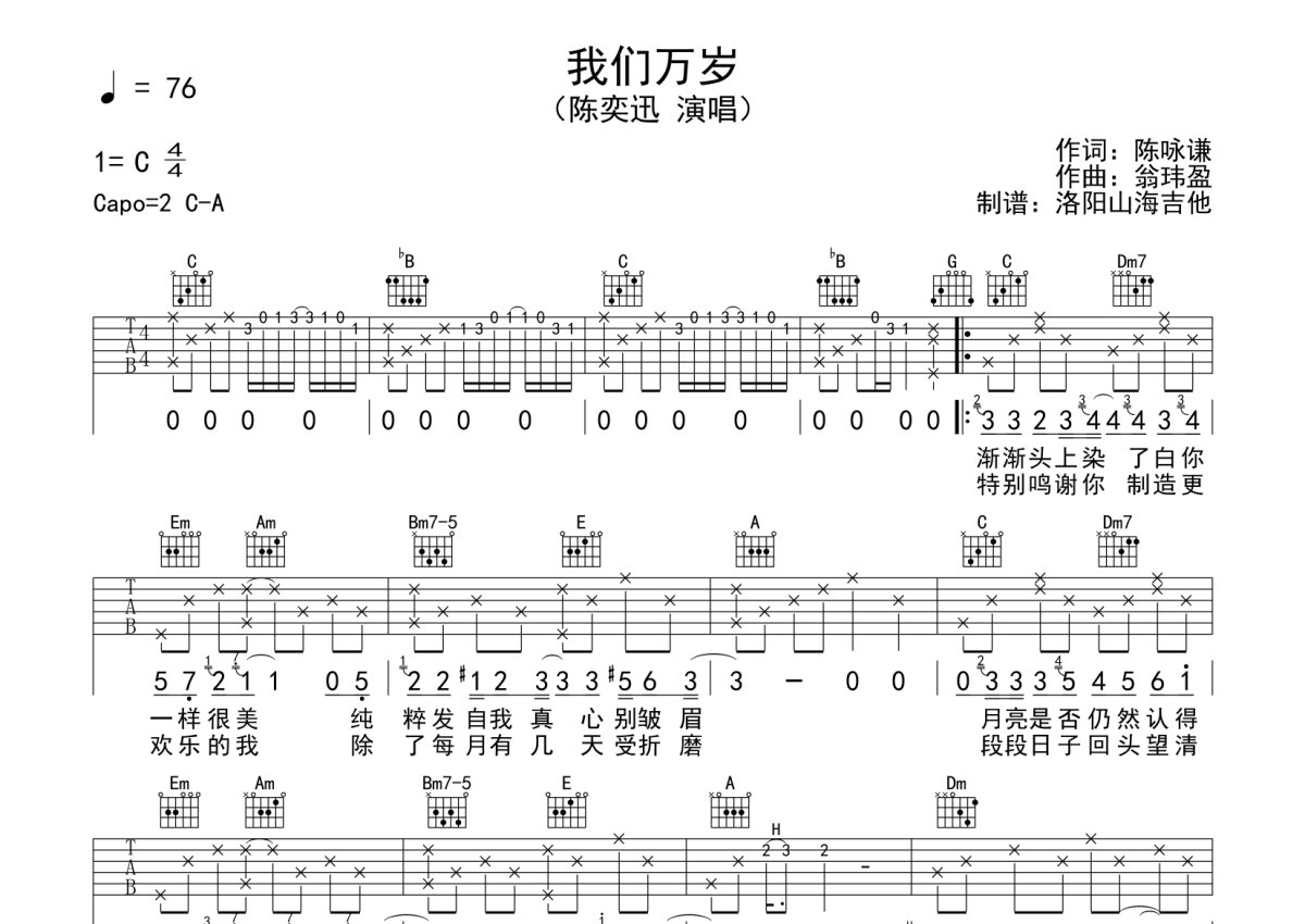 陈奕迅《我们万岁》吉他谱 - C调弹唱六线谱