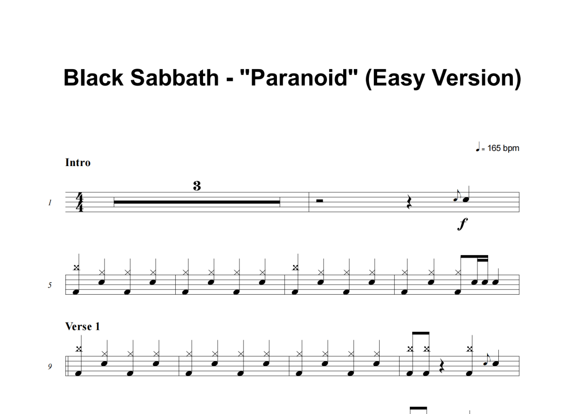 Black Sabbath《Paranoid (Easy Version)》架子鼓谱