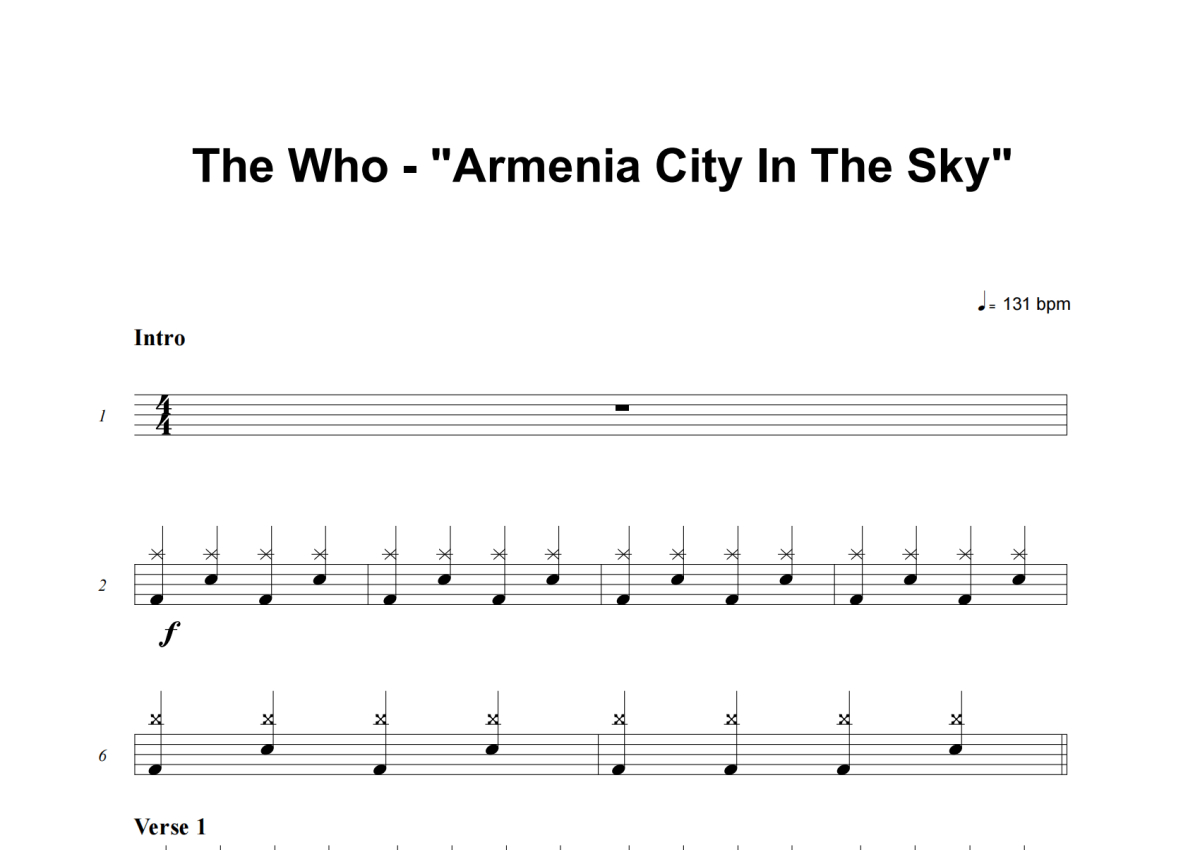 The Who《Armenia City In The Sky (Easy Version)》架子鼓谱