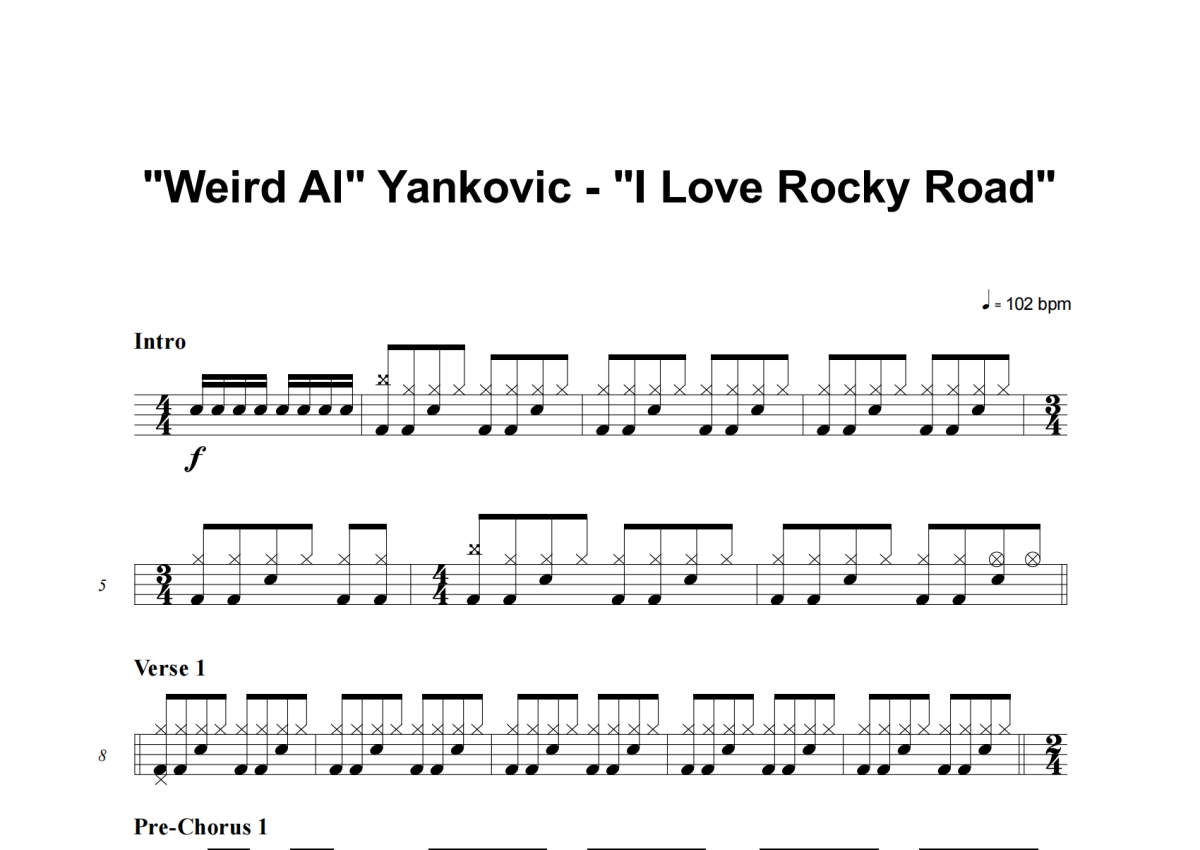 Weird Al Yankovic《I Love Rocky Road》架子鼓谱