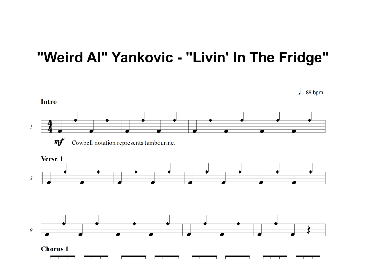 Weird Al Yankovic《Livin' In The Fridge》架子鼓谱