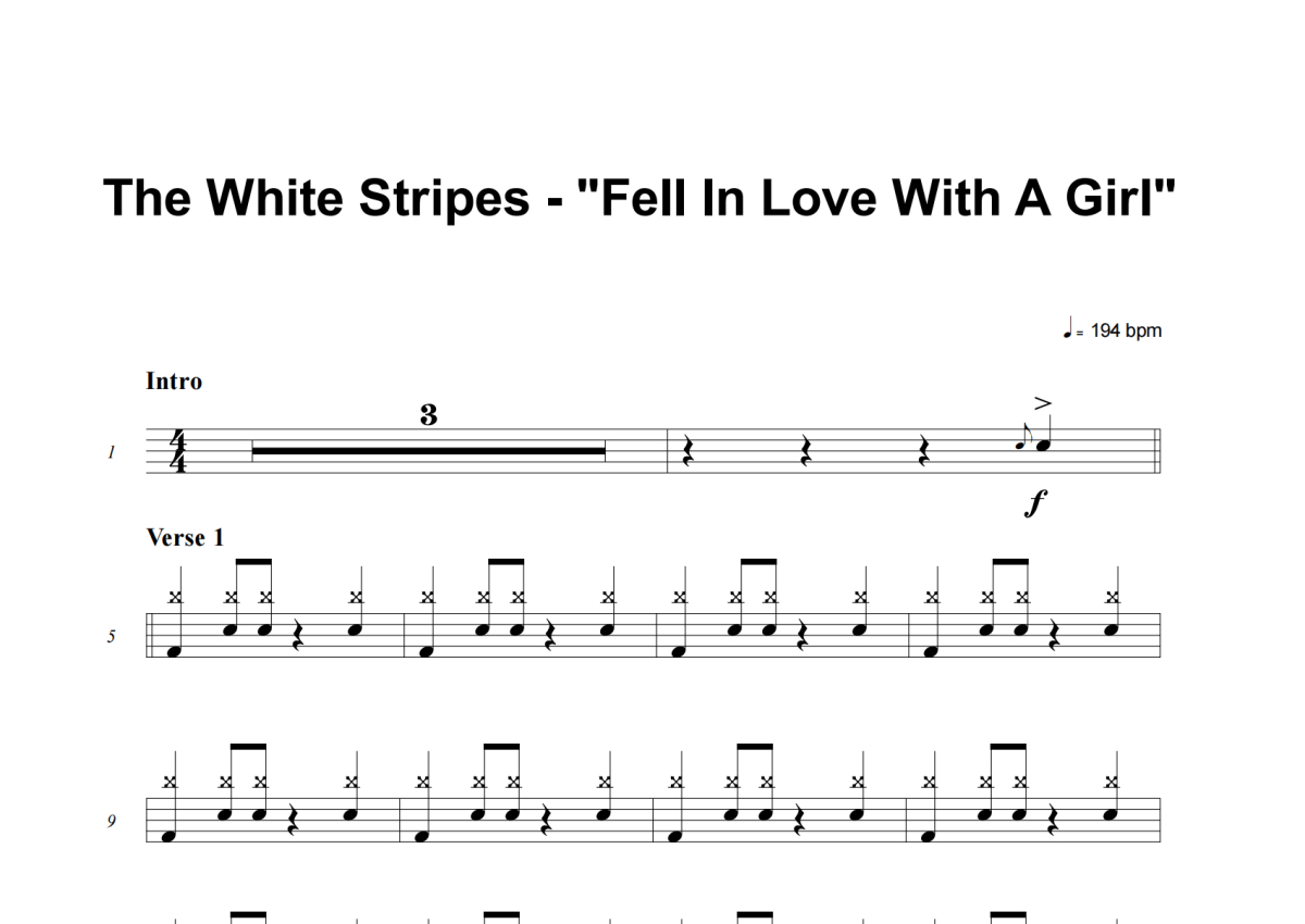 The White Stripes《Fell In Love With A Girl》架子鼓谱