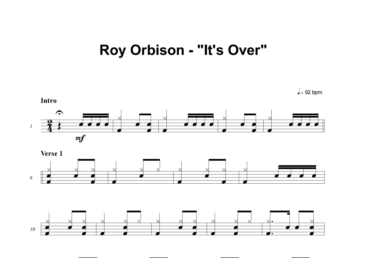 It's Over架子鼓谱 - Roy Orbison演唱
