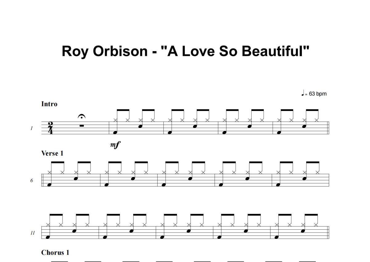 Roy Orbison《A Love So Beautiful》架子鼓谱