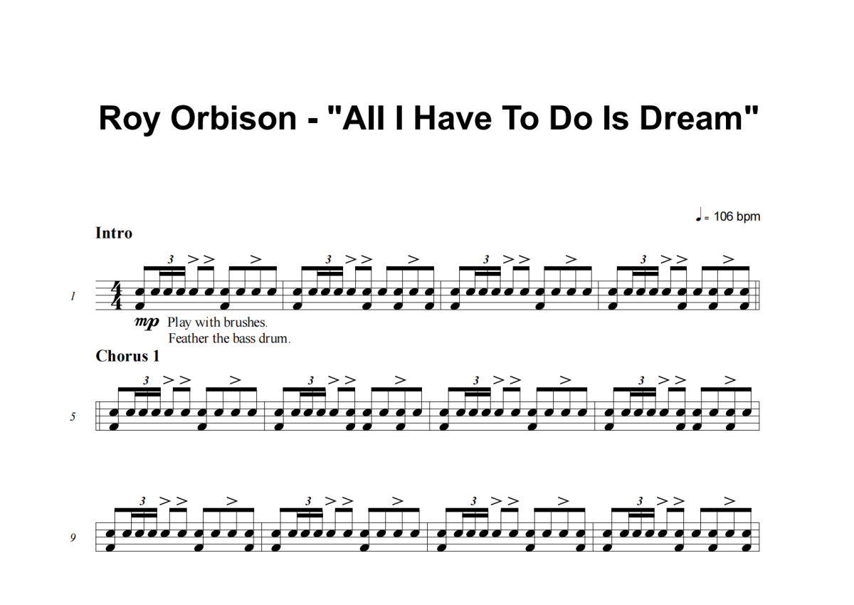 Roy Orbison《All I Have To Do Is Dream》架子鼓谱