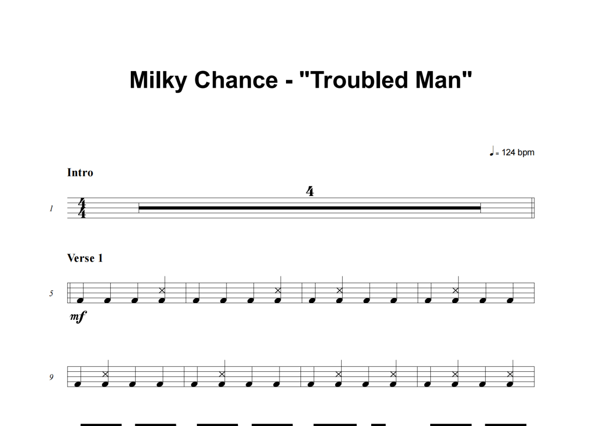 《Troubled Man》是Milky Chance演唱的一首歌曲,这份架子鼓谱共有三张高清图谱,图谱由 @庄颜 编配上传,图谱使用五线谱编配,使用这份Troubled Man架子鼓谱,你将能够轻松地敲打出这首Milky Chance的Troubled Man,快来尝试吧。