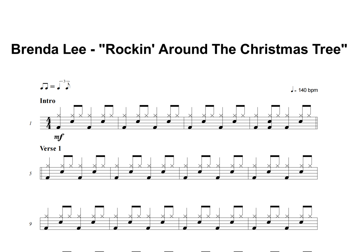 Rockin' Around The Christmas Tree架子鼓谱 - Brenda Lee演唱