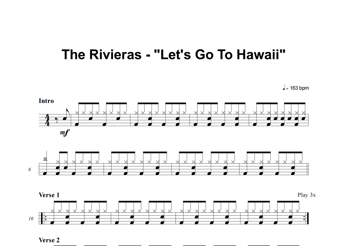 The Rivieras《Let's Go To Hawaii》架子鼓谱