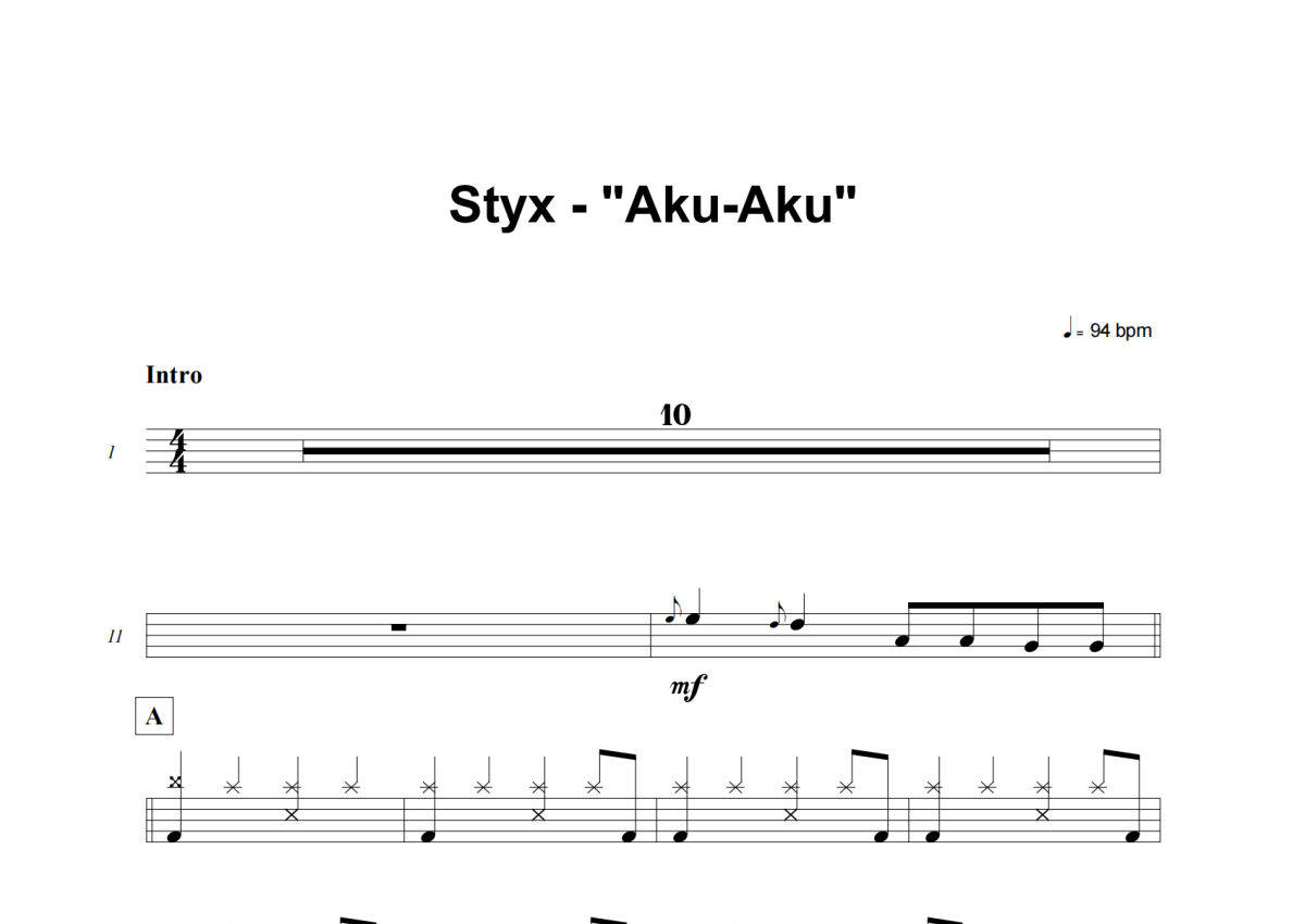 Styx《Aku-Aku》架子鼓谱