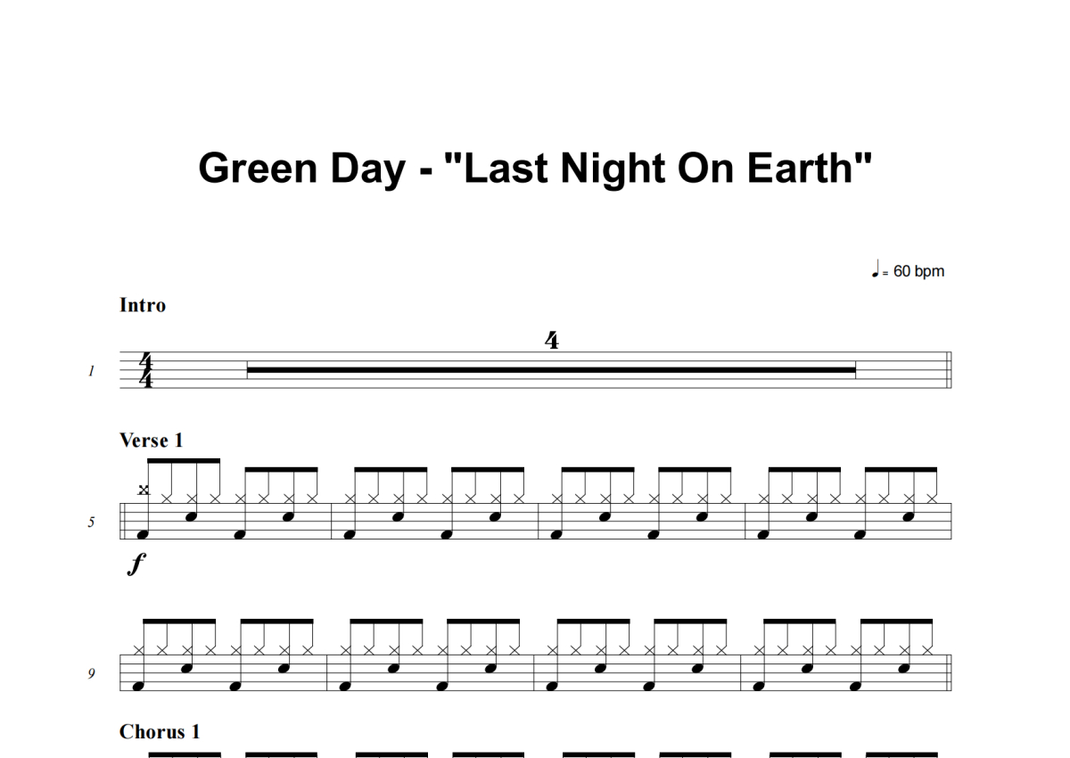 《Last Night On Earth》是Green Day演唱的一首歌曲,这份架子鼓谱共有两张高清图谱,图谱由 @庄颜 编配上传,图谱使用五线谱编配,使用这份Last Night On Earth架子鼓谱,你将能够轻松地敲打出这首Green Day的Last Night On Earth,快来尝试吧。