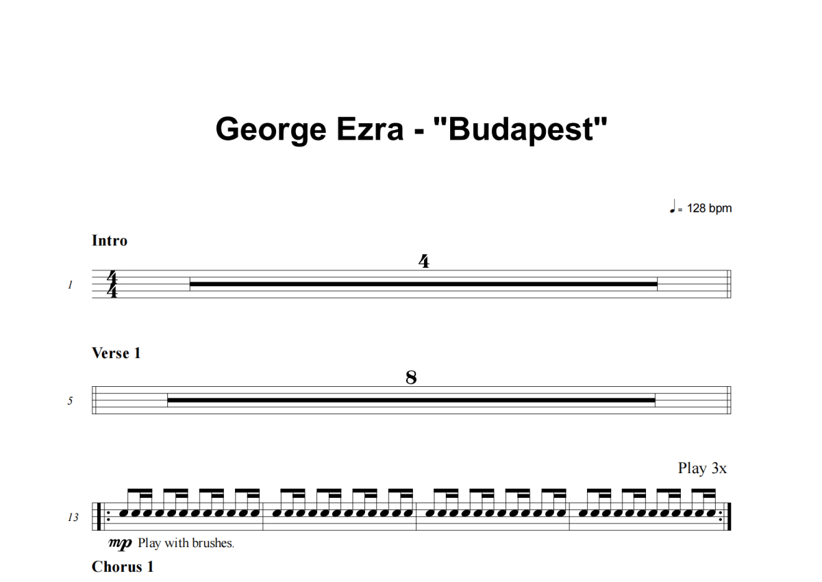 George Ezra《Budapest》架子鼓谱