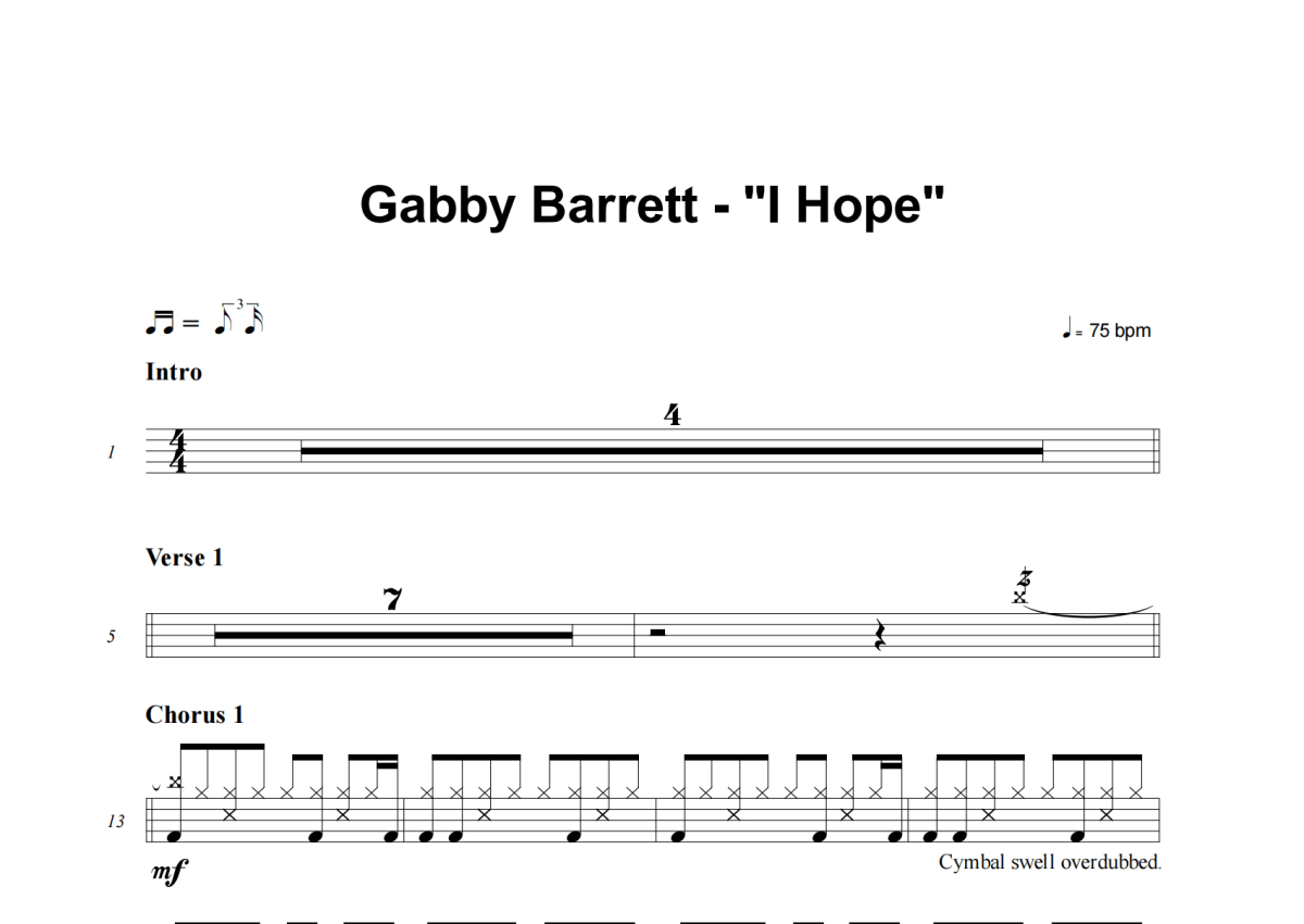 I Hope架子鼓谱 - Gabby Barrett演唱