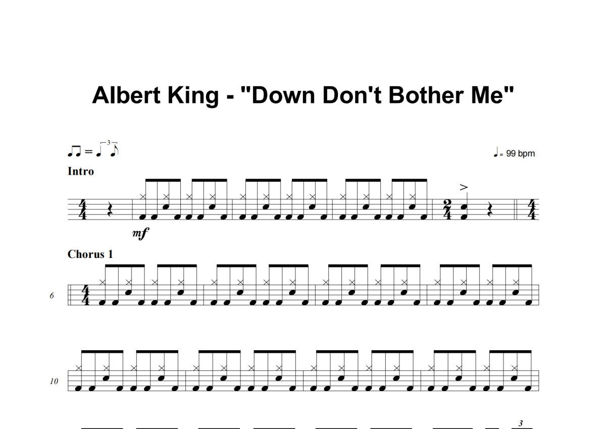 Albert King《Down Don't Bother Me》架子鼓谱