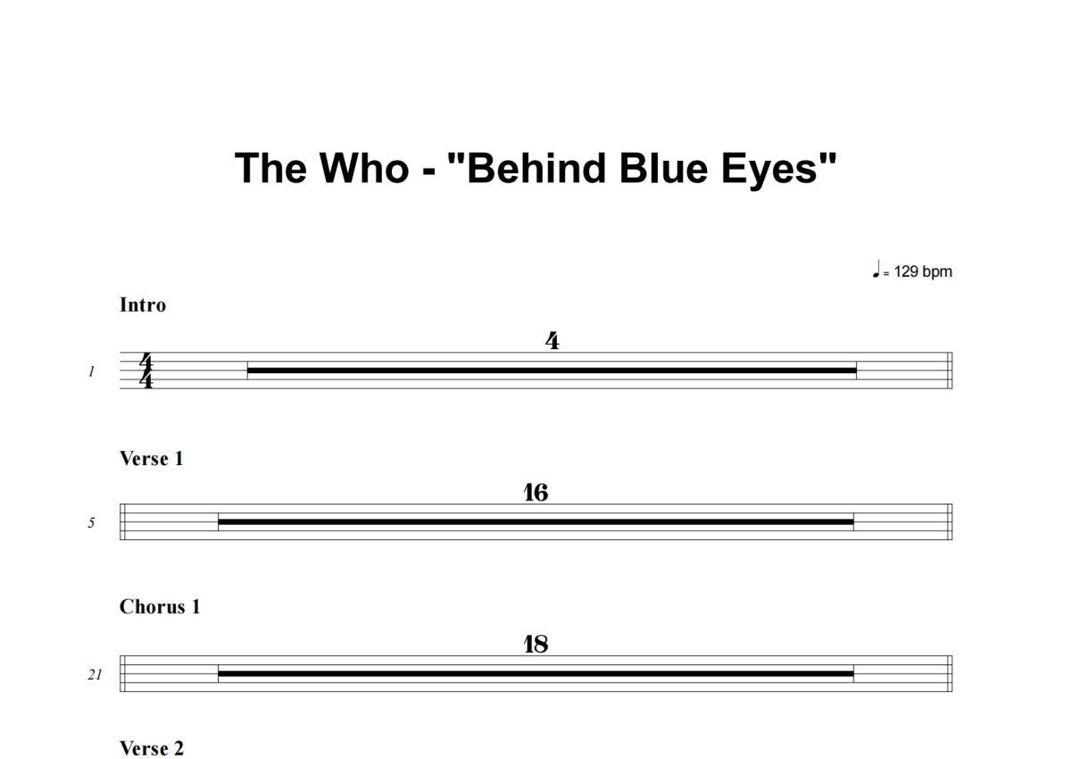 《Behind Blue Eyes》是The Who演唱的一首歌曲,这份架子鼓谱共有三张高清图谱,图谱由 @庄颜 编配上传,图谱使用五线谱编配,使用这份Behind Blue Eyes架子鼓谱,你将能够轻松地敲打出这首The Who的Behind Blue Eyes,快来尝试吧。